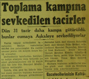 Varlık Vergisi'ni ödeyemeyen Gayri-Müslümler, dönemin modasına uygun olarak toplama kamplarına gönderiliyordu: 1943 tarihli Cumhuriyet Gazetesi