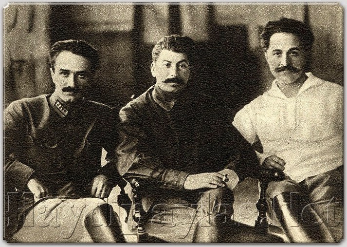 stalin-lenin-kalinin. stalin- kî "çelikten" demektir- takma adını almadan önce, gürcistan'daki kod adı "koba" idi (koba eski bir gürci kahramanıdır)